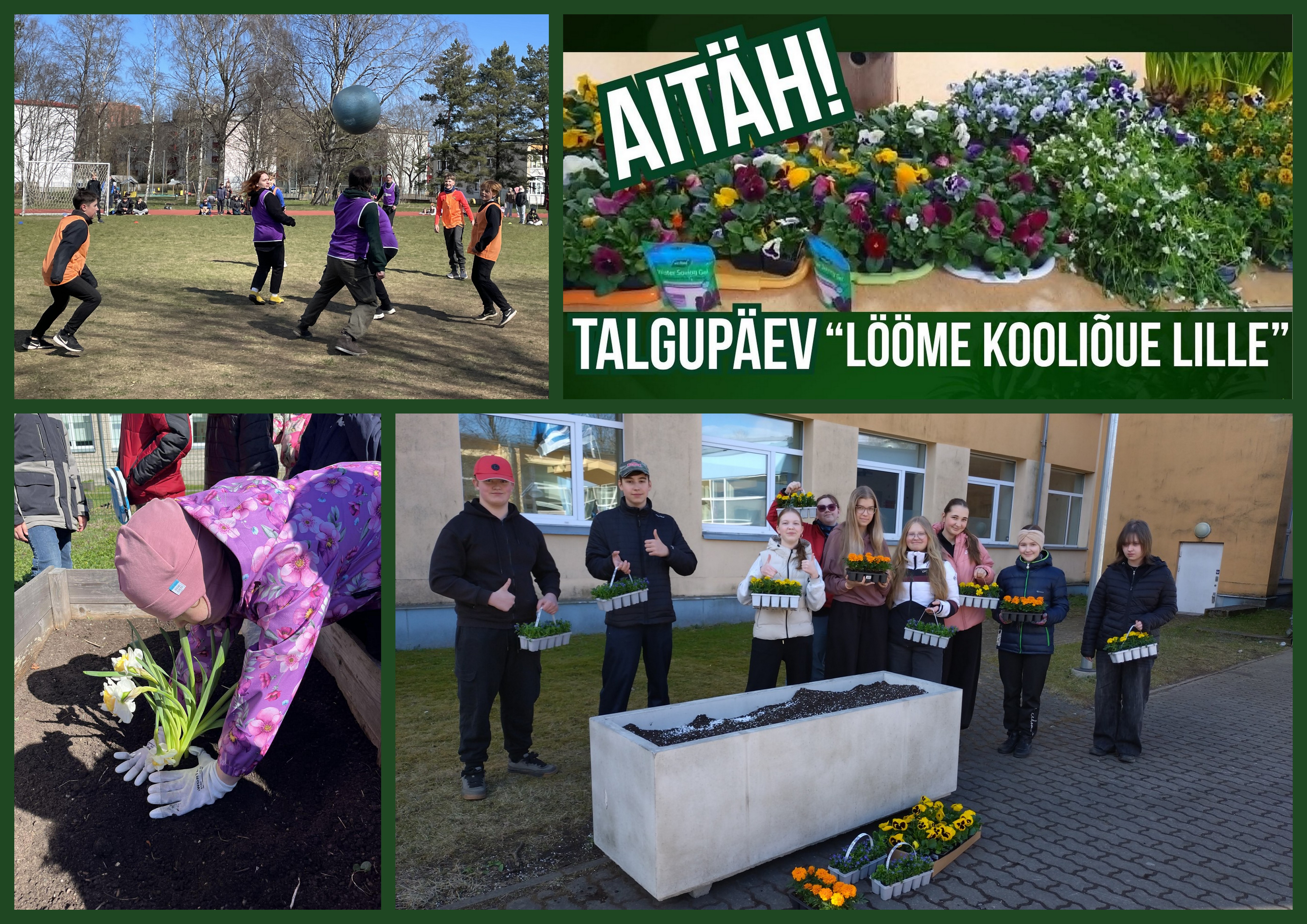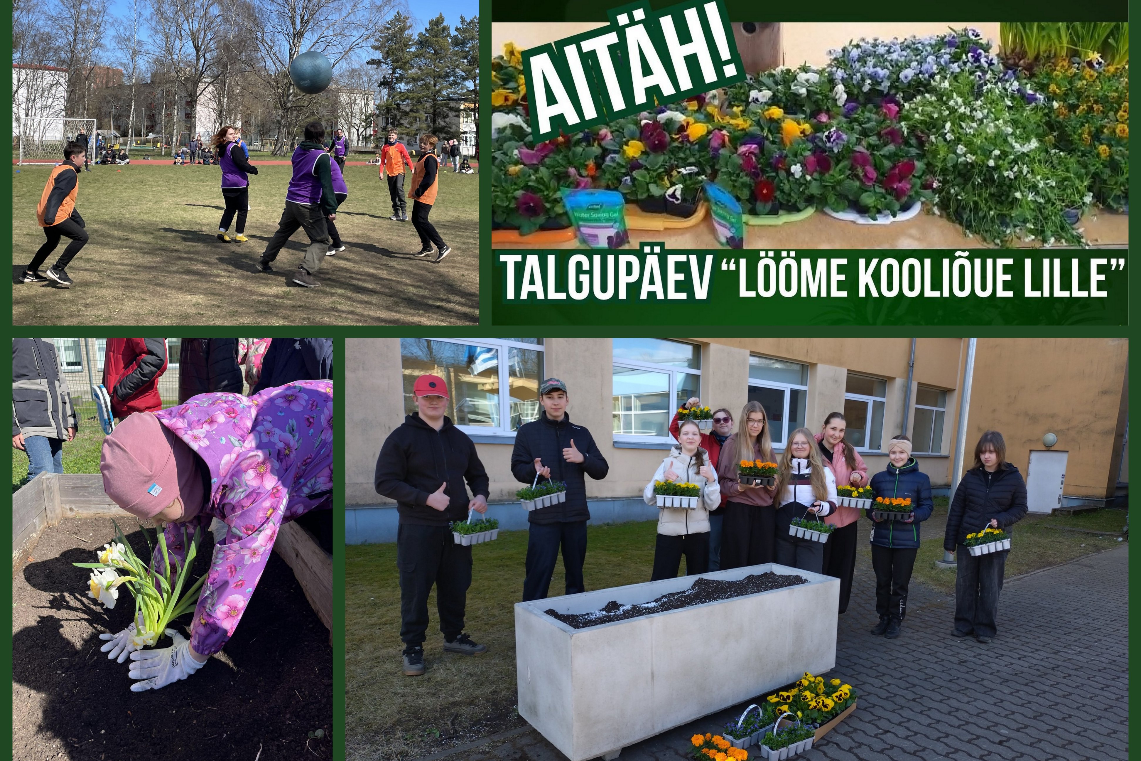 Suur aitäh klassidele õitsvate kingituste eest ning kõigile talgulistele meeleoluka ja ühtehoidva päeva eest! Tänu ühisele panusele on kooli ümbrus nüüd kevadvärvides ning toob rõõmu kõigile, kes kooli tulevad. Kooliõu sai tõepoolest lille löödud – aitäh!