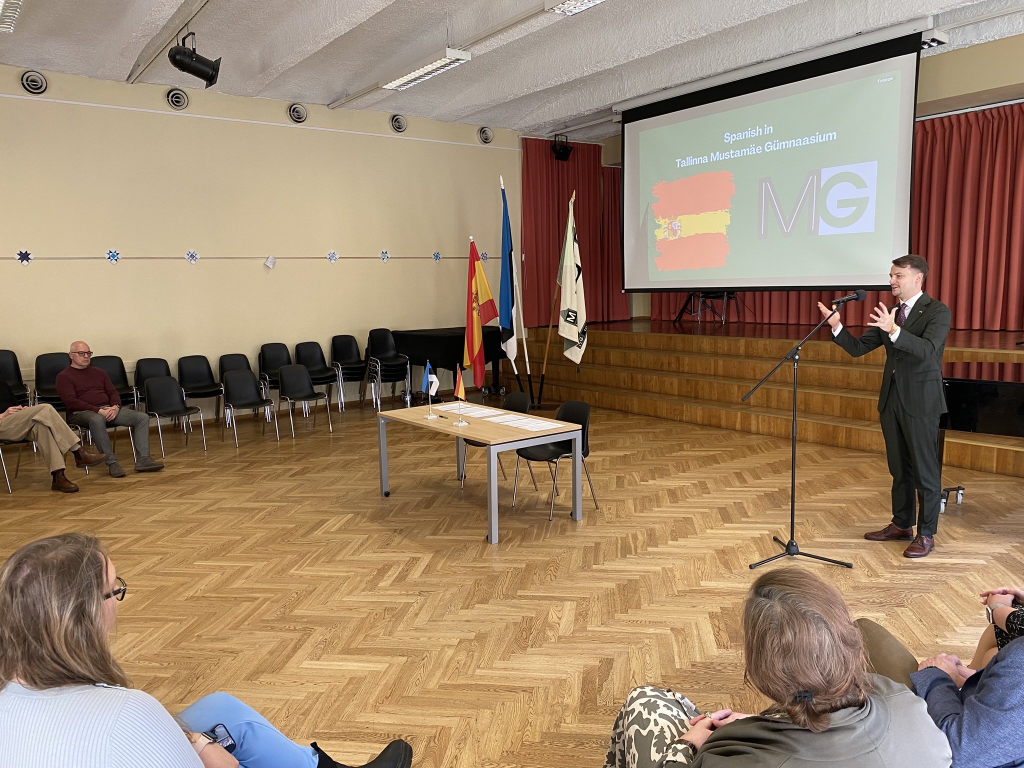 Tallinna Mustamäe Gümnaasiumis sõlmisid Tallinna Linn ja Hispaania Kuningriigi Haridus- ja Kutseharidusministeerium vastastikuse mõistmise memorandumi. Memorandumile kirjutasid alla Tallinna abilinnapea Aleksei Jašin ja Hispaania Kuningriigi Haridus- ja Kutseharidusministeeriumi nõunik José Aurelio Llaneza Villanueva.